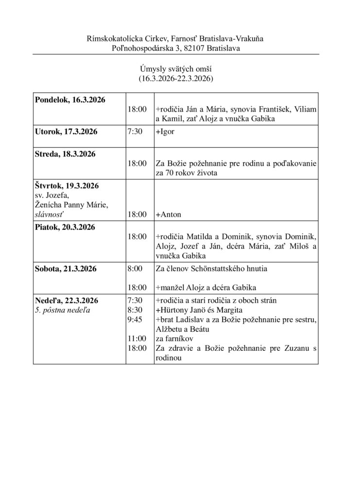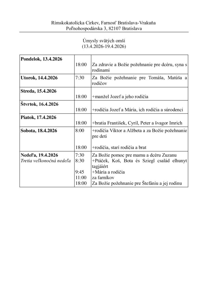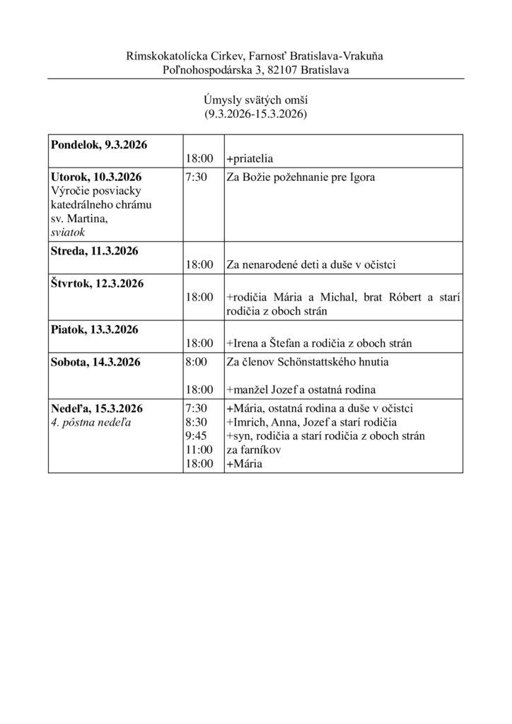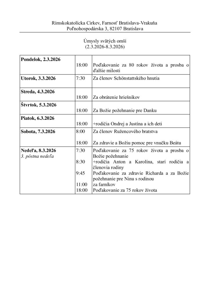 Potrebné tlačivá nájdete na našej farskej stránke www.vrakuna.eu, alebo na stolíku pri Katolíckych novinách.